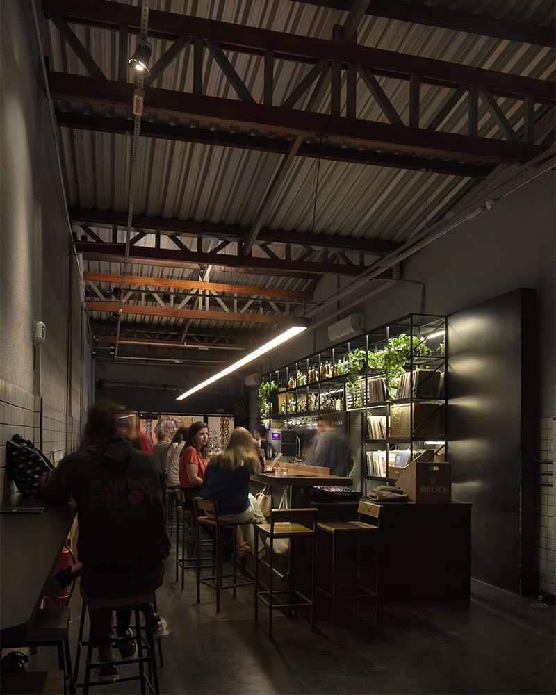 renovação de antigo galpão com o pretexto de abrigar bar audiófilo