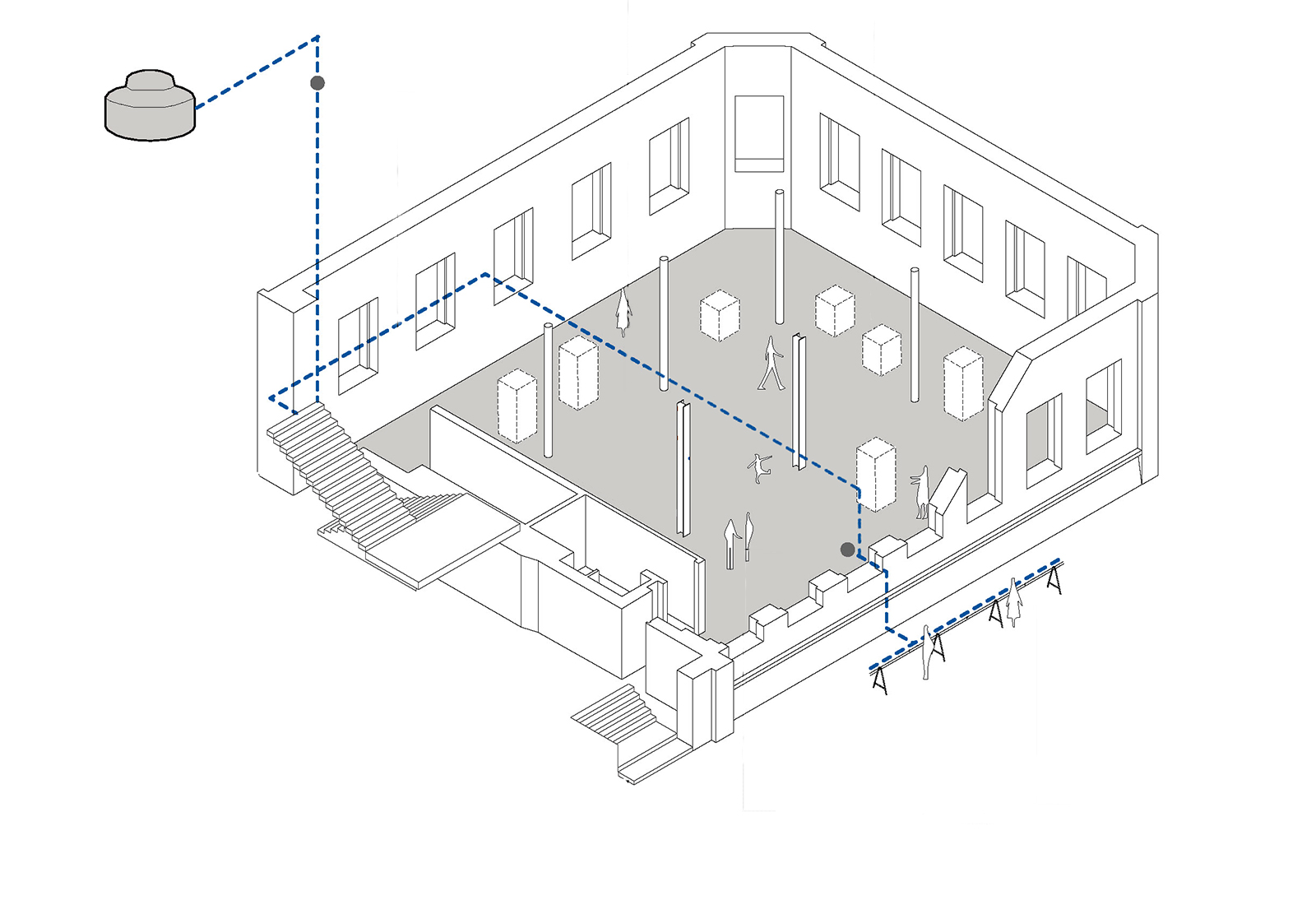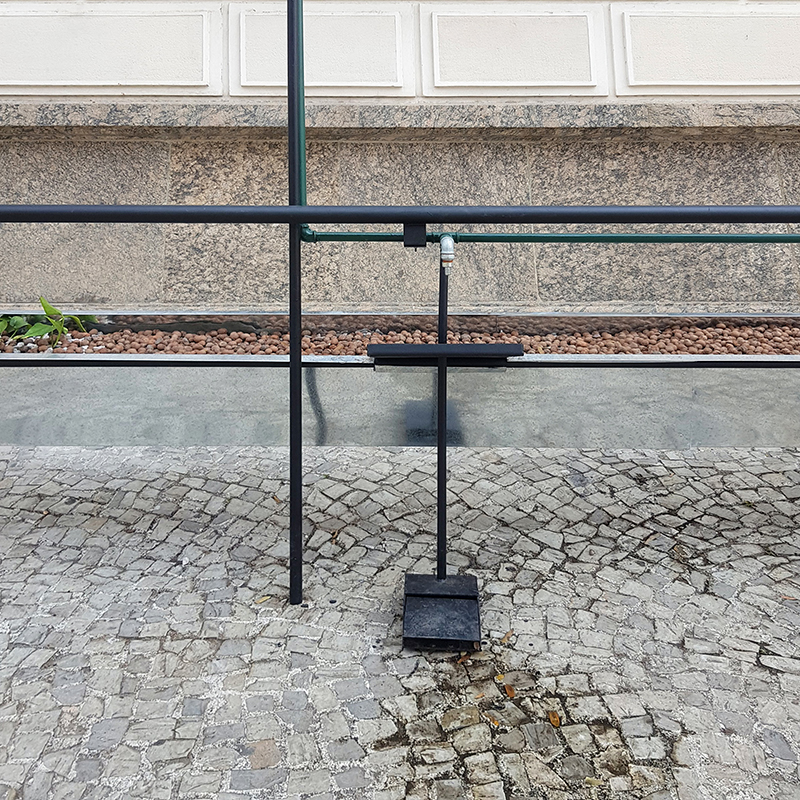 a instalação “bica”, concebida a convite da curadoria da a exposição “casa carioca”, começou a ser projetada em fevereiro de 2020 em meio a uma das mais graves crises hídricas de nossa história e foi concluída em agosto de 2020, durante a pandemia de covid-19. o trabalho cria um novo sub-ramal de distribuição de água do edifício do mar, prolongando-o até a calçada da praça mauá, onde são instaladas 3 bicas públicas. a intervenção na rede de infraestruturas do museu se realiza em três momentos: captação, filtragem e fonte.