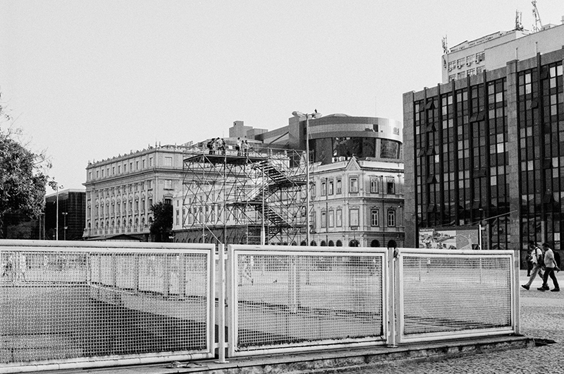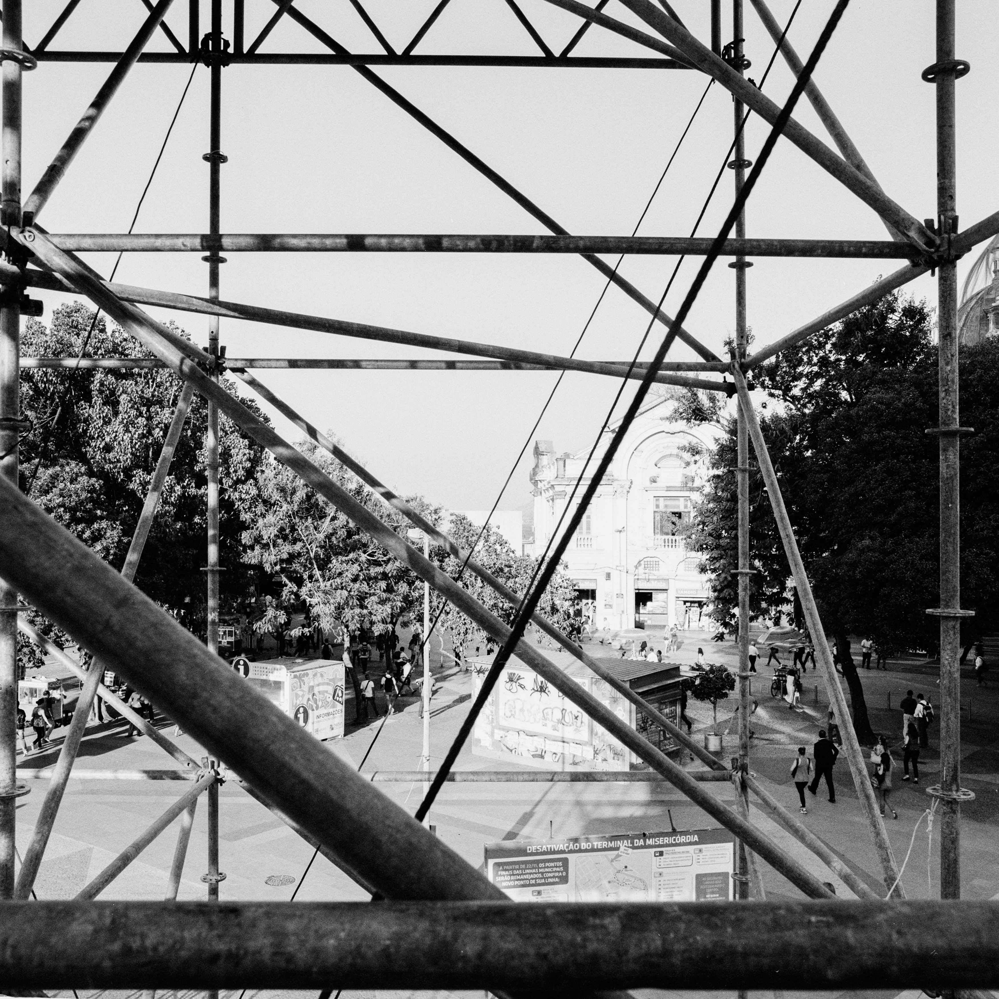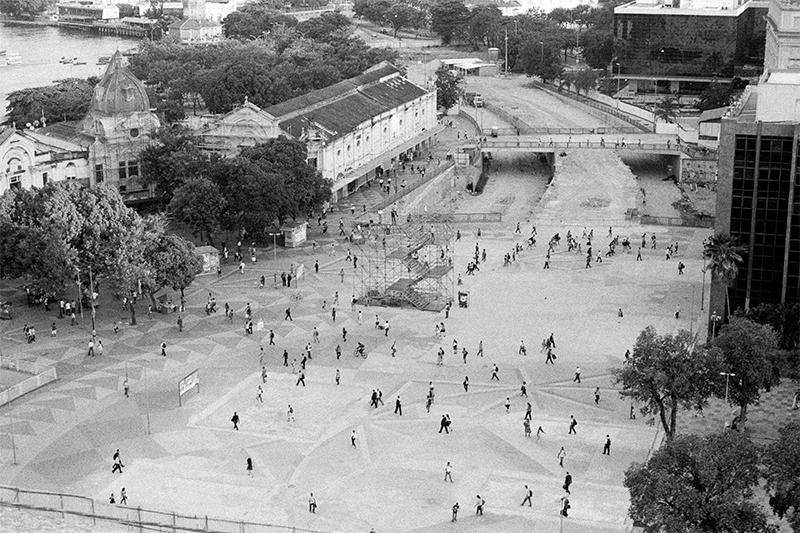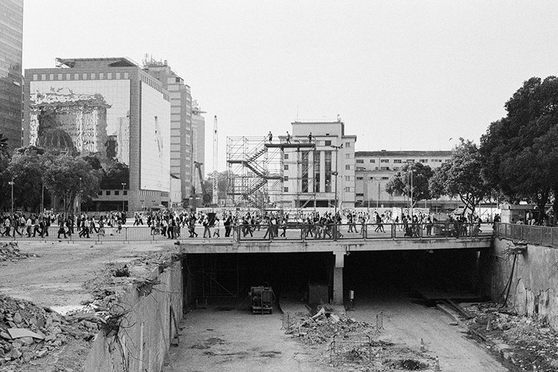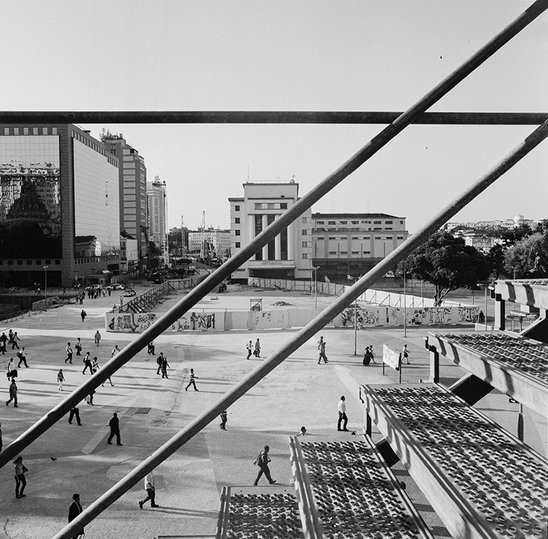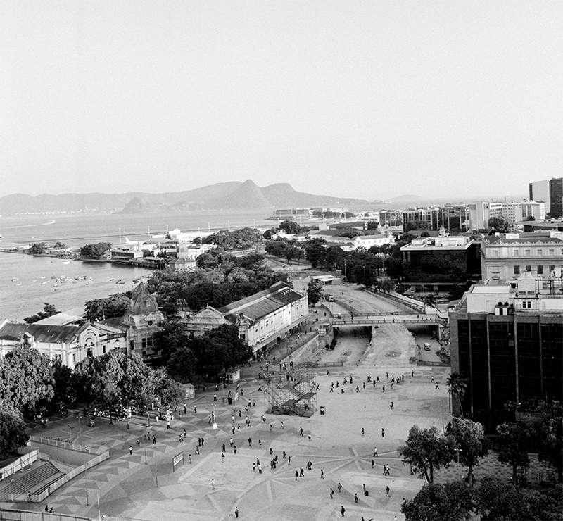 a partir da cota 10 experimenta-se a praça xv de forma inédita, descortina-se a baía de guanabara por trás da estação das barcas, as copas das árvores se alinham com o horizonte, o ir e vir dos transeuntes se torna distante. onde antes havia uma pesada infraestrutura agora há o vazio, o vento. o corpo pode demorar-se onde um dia passou veloz.