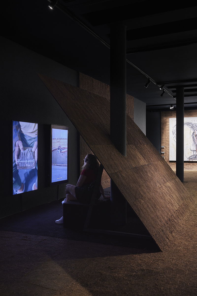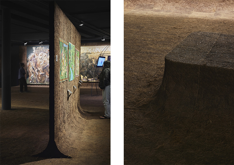 A exposição “Nossa vida Bantu” reúne obras de diferentes artistas com a intenção de expor o papel significativo que os povos de diferentes países africanos, denominados bantus, tiveram na formação cultural do Brasil. O projeto expográfico, desenvolvido em colaboração com Stella Tennenbaum, busca criar um ambiente imersivo para acomodar as obras de imensa expressividade através do uso da fibra de coco no piso e nas paredes, conformando certa continuidade entre os planos horizontais e verticais. Essas duas linhas são atravessadas por planos oblíquos que emergem do piso como uma dobra para conformar painéis e recintos.