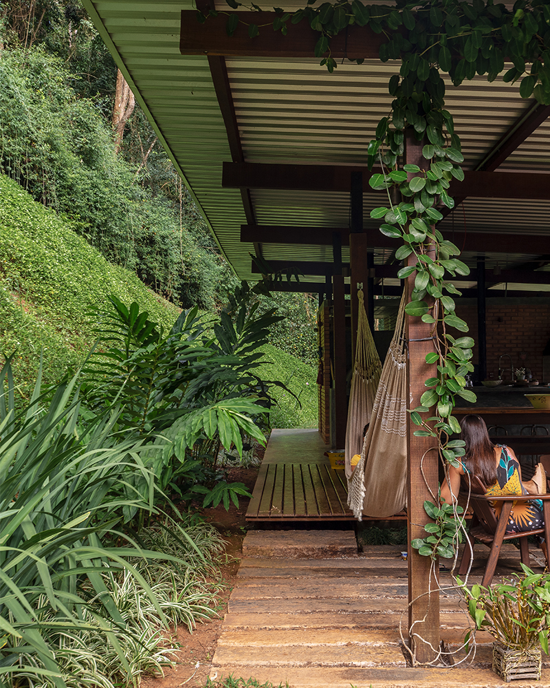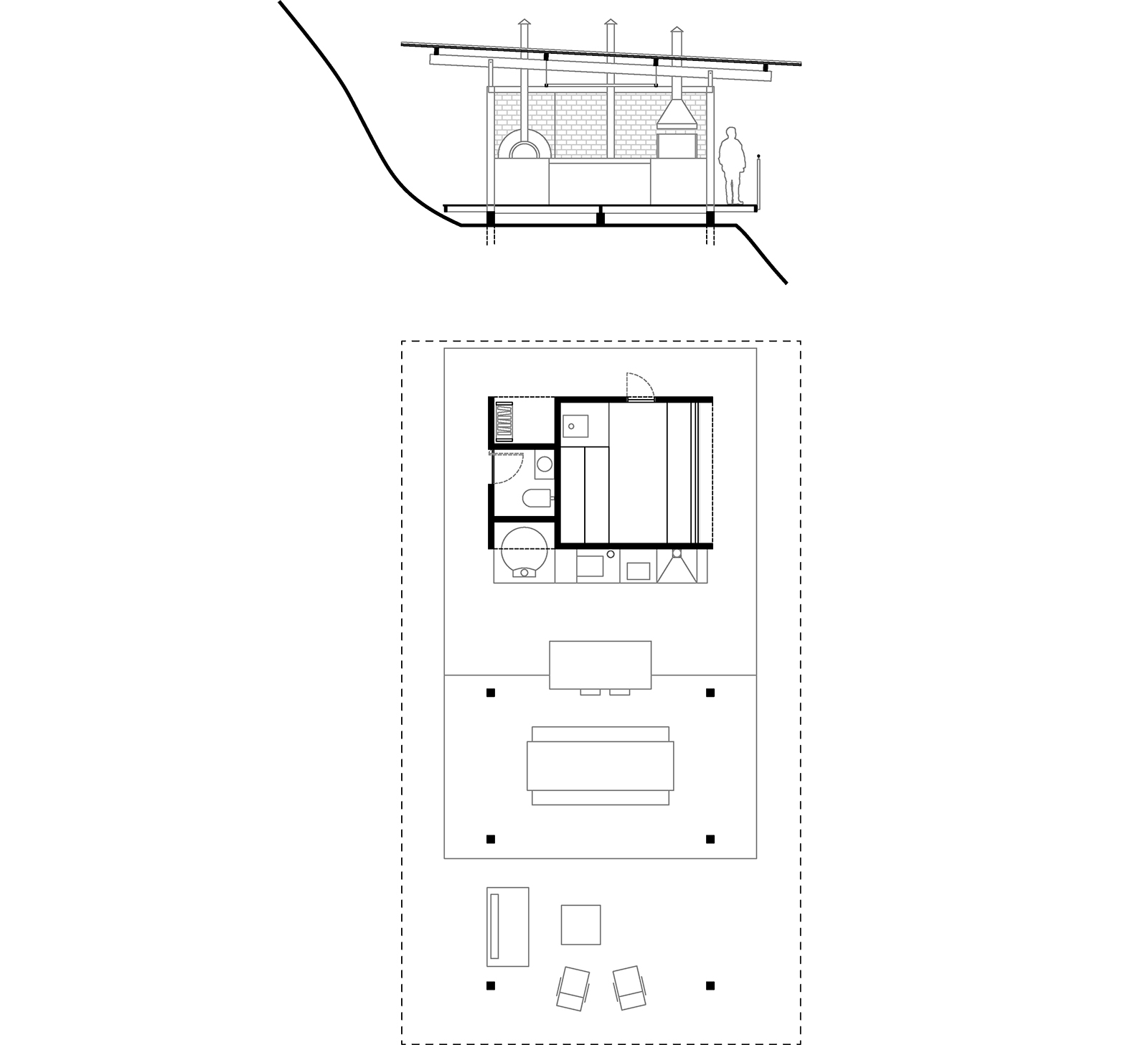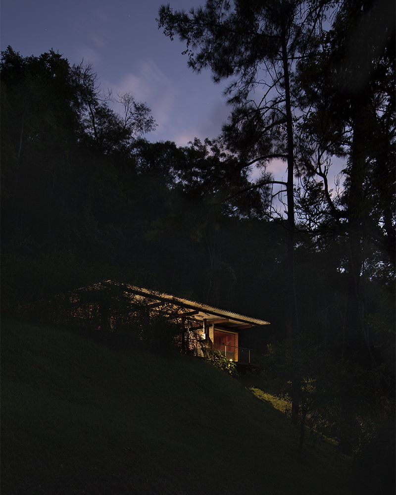 o projeto para o pavilhão anexo a uma residência no vale das videiras, rio de janeiro, parte da premissa de disponibilizar um espaço aberto e, ao mesmo tempo, protegido do forte sol e chuva que incidem sobre a região. localizada num platô pré-existente, a edificação foi pensada em função de sua relação com a casa situada no terreno, ativando o espaço intermediário entre as duas edificações.