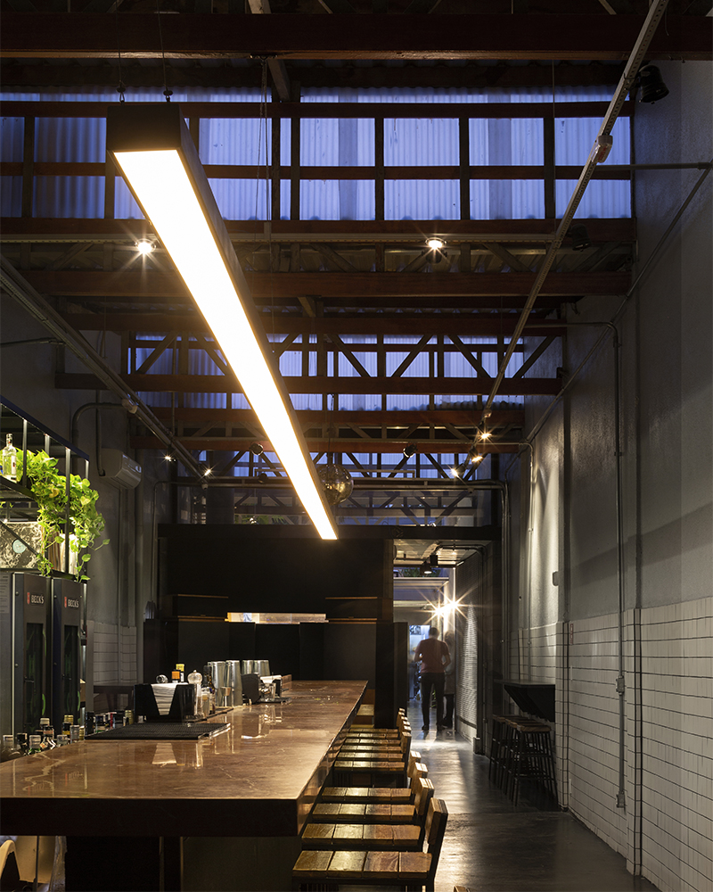 renovação de antigo galpão com o pretexto de abrigar bar audiófilo